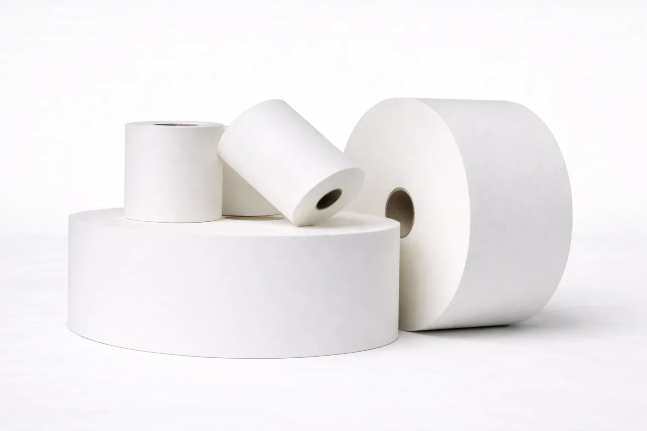 Rewinds jumbo tissue into uniform logs with precise tension control, preparing consistent rolls for cutting and packaging.